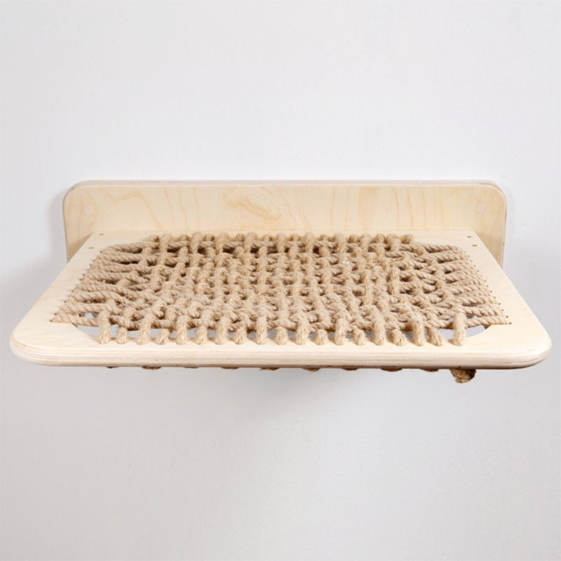 Katzen Hängematte | Wandmontiert aus Holz & Sisal | Kratzplatz & Ruhezone
